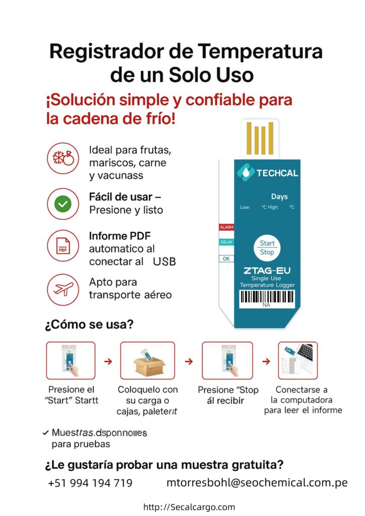 Este registrador de temperatura ayuda a los recibidores a comprender claramente si aceptar o rechazar un envío. Además, los recibidores pueden escanear fácilmente el producto en tránsito y almacenado, y comunicar el estado a través de pdf.