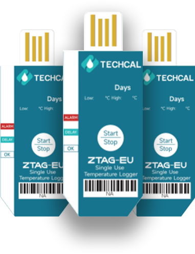 Techcal ZTAG-EU, un registrador de datos electrónico de comunicación de campo cercano (USB) es un dispositivo versátil adecuado para transportes marítimos, kits de ensayos clínicos, envíos de verduras, frutas, carnes, dispositivos médicos y vacunas.